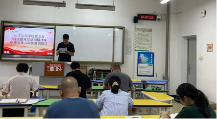 2024年7月22日,化工与药威廉希尔党总支开展了7月主题党日活动暨铸牢中华民族共同体意识宣讲会。威廉希尔班子成员、党总支各委员、各支部书记等参加了会议。会议由党总支书记李立威主持。